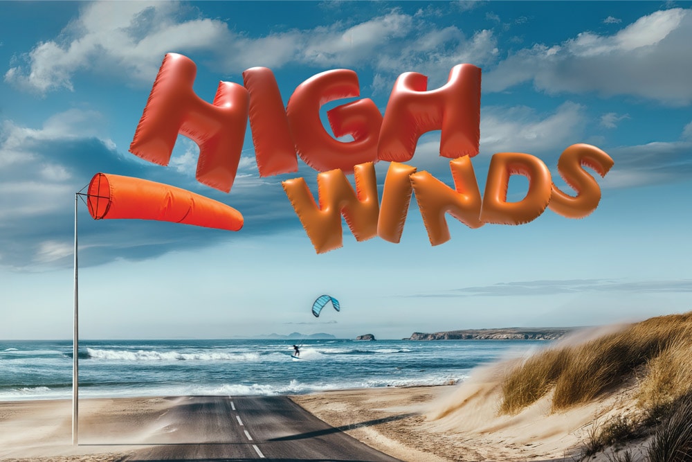 This is a high wind warning to note use inflatables in the water, just like 'Strong Winds' road signs tell you to be extra cautious of cross winds on the road.